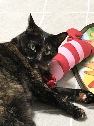 先日、猫じゃらしに蹴り蹴りしていたので、蹴りぐるみを買いました。 これまで何個買っても見向きもしてくれなかったので、蹴り蹴りしない猫なのかと思って娘のわんこにあげてしまったら、私の足にキックしたり、スリッパにキックしたり。 猫のキックする力…
