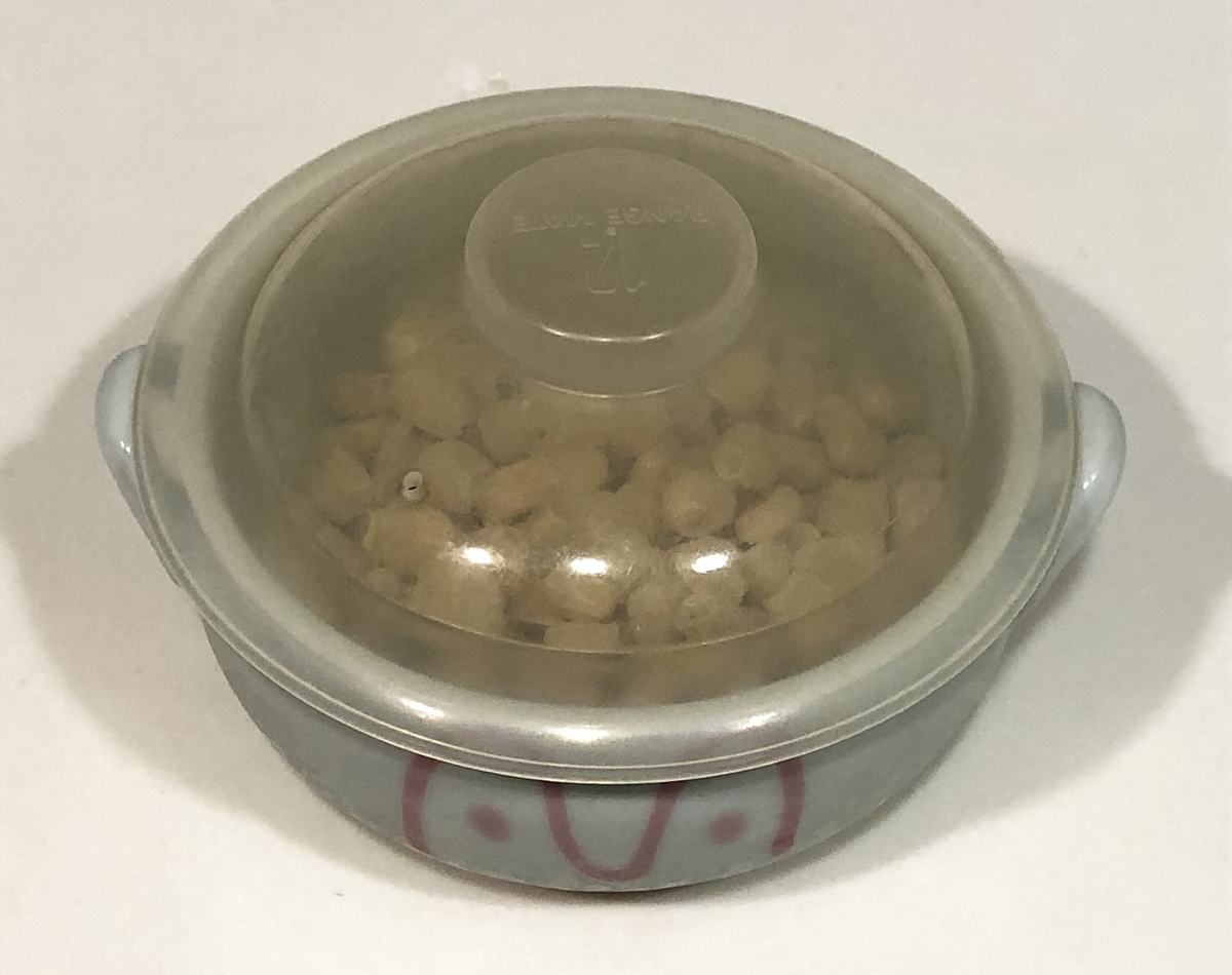 2.冷凍コーンはお皿にあけます。